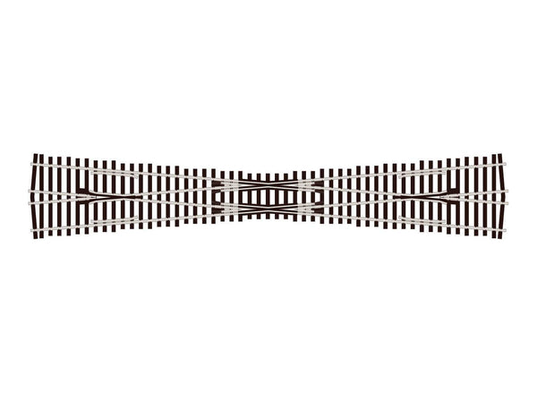 The Short Crossing is double the angle of other track components in this range; it can be used with 4 Medium radius turnouts (SL-E1495/6) to form a scissors crossover, or even more complex formations incorporating the SL-E1490 double slip.