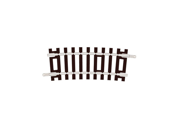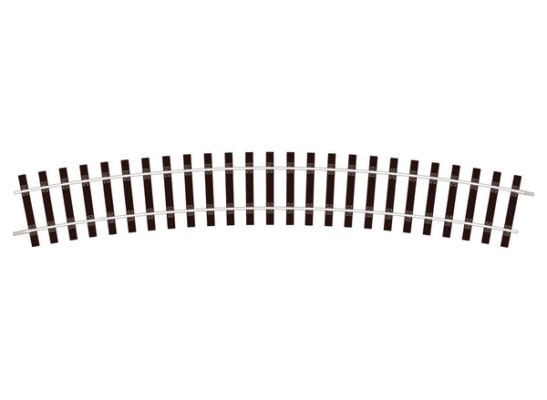 Die massiven Neusilberschienen sind für maximale Realitätsnähe und Stabilität integral in die Schwellenbasis eingegossen. Die Weichen sind mit einer Übertotpunktfeder für den sofortigen Einsatz ausgestattet, es sind keine zusätzlichen Hebel erforderlich. Diese Kurve entspricht der Y-Weiche ST-247.