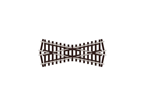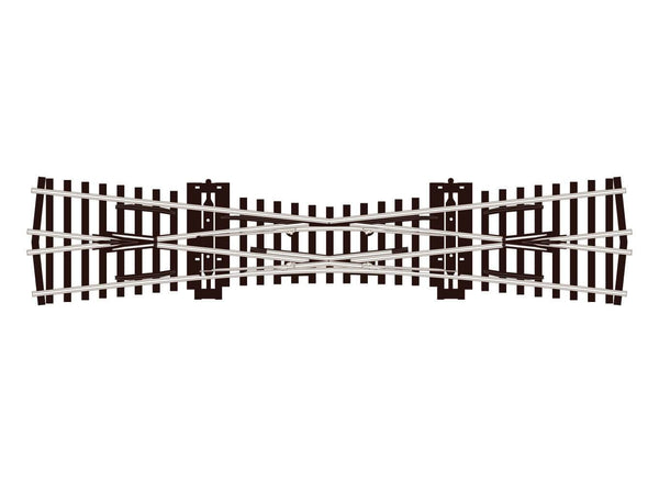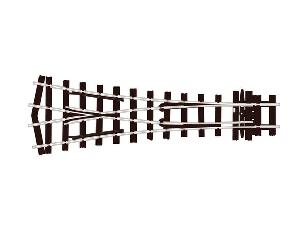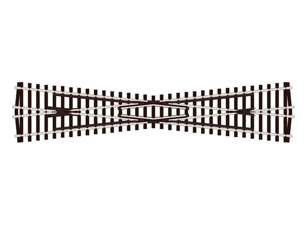 The Short Crossing is double the angle of other track components in this range, this enables it to be used to form scissors formations in conjunction with them. Also, a compact double junction can be formed by using it with 2 short Y turnouts (Overall length 275mm).