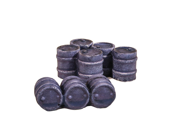 Pack contains 12 Oil Drums to use as a load or as detail for your goods yard or oil depot. See Ratio Ref. 529 Oil Depot
